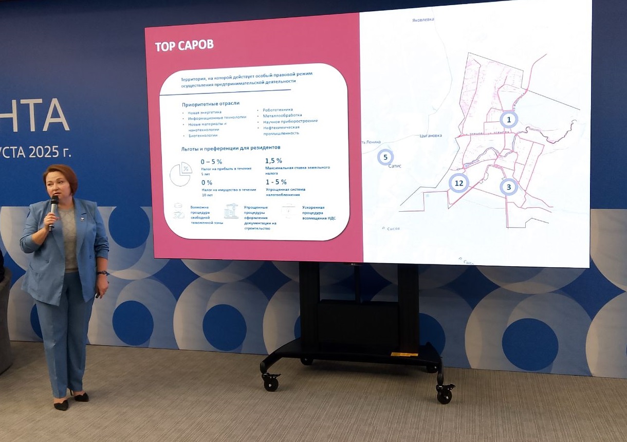Заместитель главы города Марина Жукова рассказала о динамике развития территории опережающего развития «Саров» и планах по экономическому развитию города в целом: «Становление территории опережающего развития в Сарове проходило в несколько этапов, - напомнила она. – И те возможности, которые ТОР сегодня дает предприятиям, действительно являются хорошим поддерживающим фактором в наших непростых реалиях. Сегодня концепция развития ТОР «Саров» пересмотрена, и во многом это связано с расширением города: в 2021 году указом президента у города появились дополнительные «открытые» территории, которые позволят развивать науку, образование и, я надеюсь, бизнес. В этом плане наши площадки становятся более привлекательными для инвесторов».