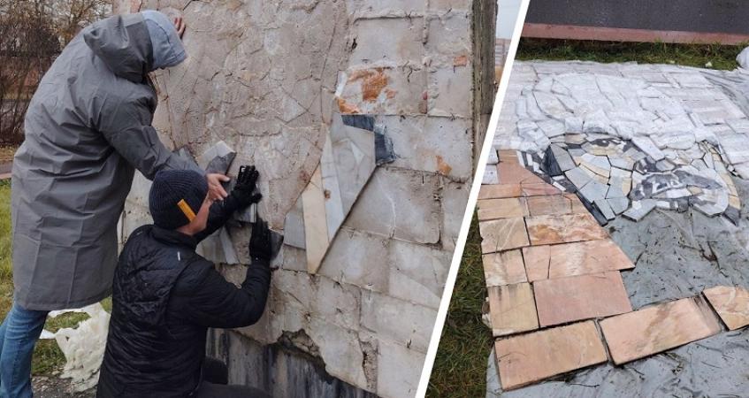 Теперь барельеф отправится в реставрационную мастерскую в Нижний Новгород, где реставраторы отмоют детали от загрязнений, а художники-мозаичисты восстановят утраченные фрагменты и произведут монтаж элементов панно на новом основании.