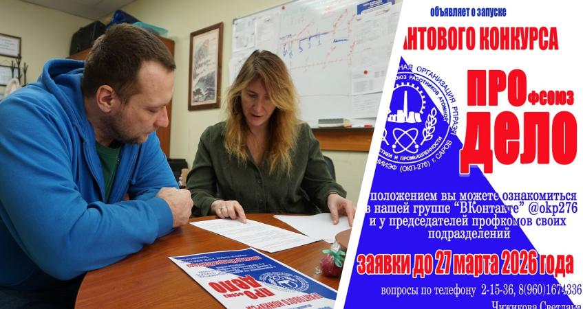Новый профсоюзный конкурс грантовых заявок «ПроДело», о котором было объявлено в начале февраля на сборе молодежных профлидеров ядерного центра, вызвал огромный интерес и в коллективах предприятия, и у горожан.