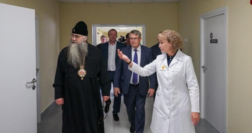 Правящего архиерея сопровождали благочинный Саровского округа протоиерей Лев Юшков, главврач КБ №50 Игорь Лашманов и заведующая детской поликлиникой Марина Алексина.