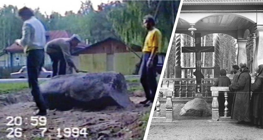 «В статье много неточностей, - пишет он в комментариях к публикации ВКонтакте. – Например, второй камень был установлен не в 1903 году (год приезда в Cаров Николая II), а лет за 10 до его приезда, примерно в 1892 году. А третий камень был установлен не в 1995-м, а в 1994 году – см. скрин с видео (на видео – 26.07.1994, – авт.). В 1995 или 1996 году был установлен не камень, а сень над камнем. Кстати, в центре – как раз тот (почему-то не названный по имени в статье) «краевед первого поколения» - Ганькин Владимир Михайлович, мой дядя».