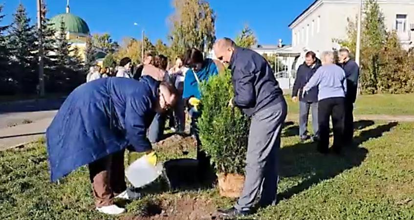 Ветераны и молодые специалисты вместе высадили деревья – молодые туи, которые украсили территорию Больничного городка.