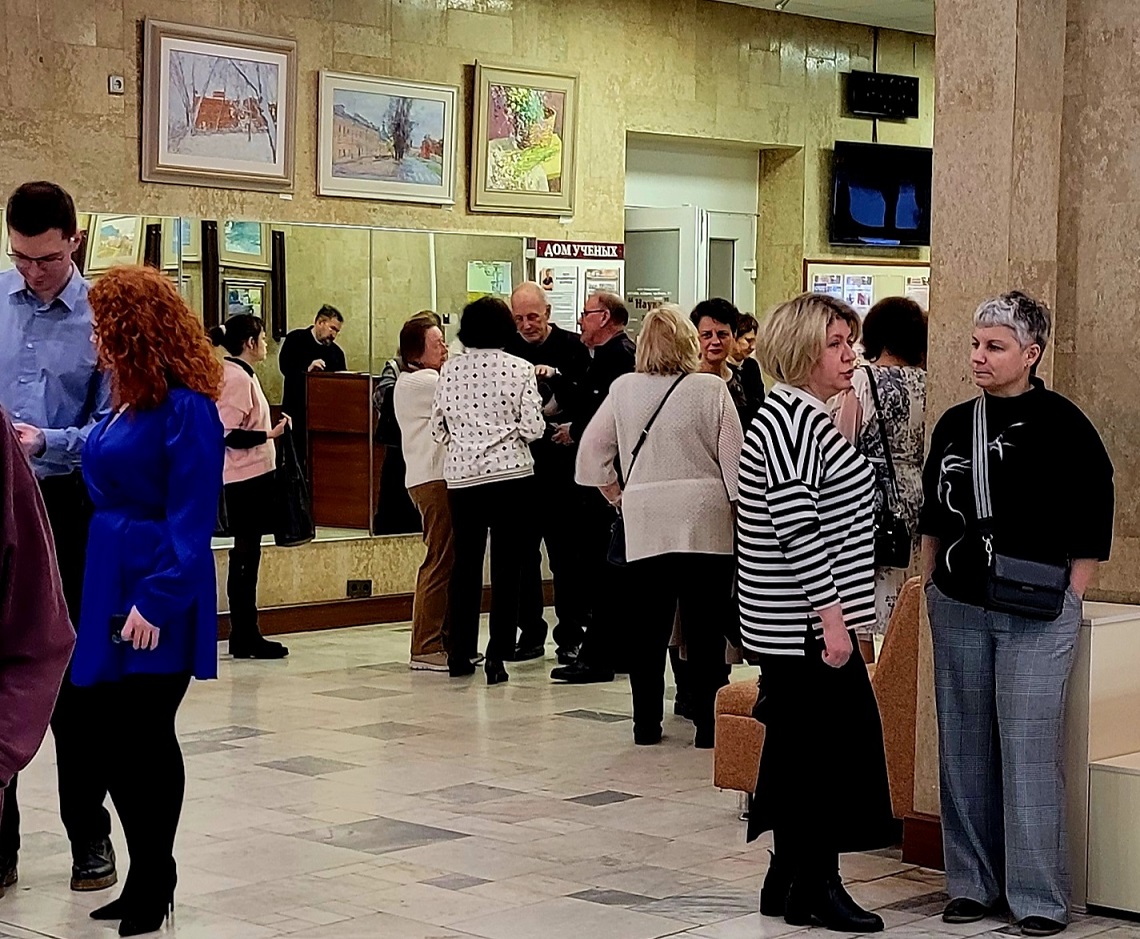 Отдельно стоит отметить, что в Доме учёных постоянно действуют сменные выставки художников, благодаря чему каждое мероприятие здесь приобретает дополнительное художественное измерение. В этот день в фойе была развёрнута персональная выставка члена Союза художников России Петра Безрукова — живописца поколения тридцатилетних – «С этюдником по жизни».