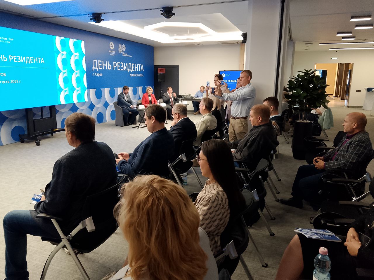 В этом году в Дне резидента, помимо действующих компаний-резидентов и предпринимателей из Сарова, приняли участие представители разных сфер бизнеса из Москвы, Санкт-Петербурга, Самары, Нижегородской области, всего – порядка 60 участников. Организаторами Дня резидента традиционно выступает управляющая компания «Атом-ТОР».